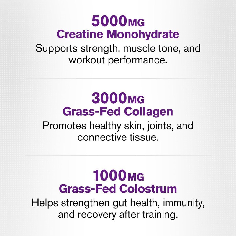 <meta name="description" content="Discover Creatine for Women—an all-in-one formula with 5 g creatine monohydrate, collagen, and colostrum to support lean muscle, workout performance, skin health, and immune function.">Benefits at a Glance