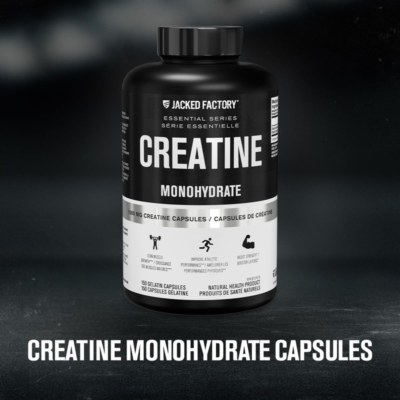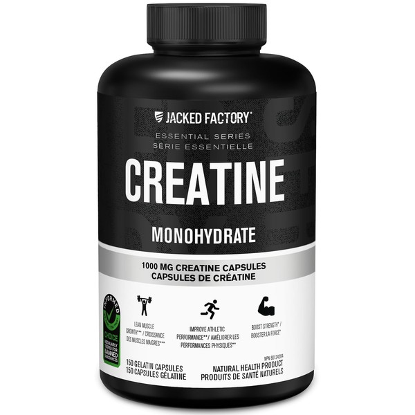 - Pure Creatine Monohydrate for Pre or Post Workout: Jacked Factory Creatine Monohydrate capsules feature 1000mg of pure creatine monohydrate in every capsule. Our capsules allow for convenient dosing of creatine anytime and anywhere without the need to mix it with a liquid.