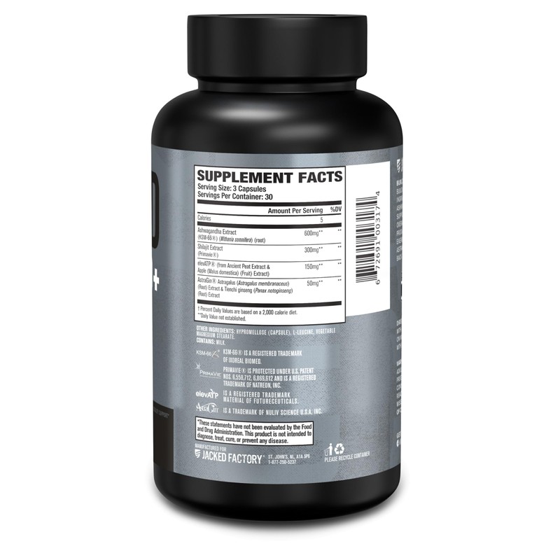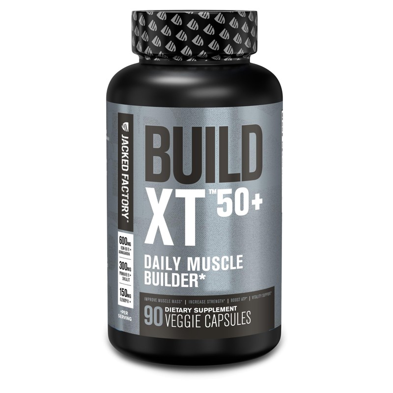 Jacked Factory Build-XT 50+ Daily Muscle Builder - Muscle Recovery Supplement & Muscle Builder for Men and Women with KSM-66 Ashwagandha, Primavie Shilajit, ElevATP, & Astragin - 90 Count