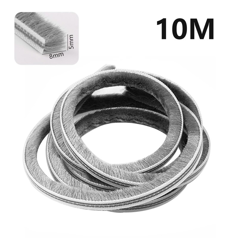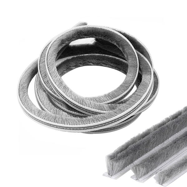 Jackfru 10 m brush seal door seal, Grey (5 Mm X 8 Mm), weather stripping for door, window, wardrobe, draught excluder