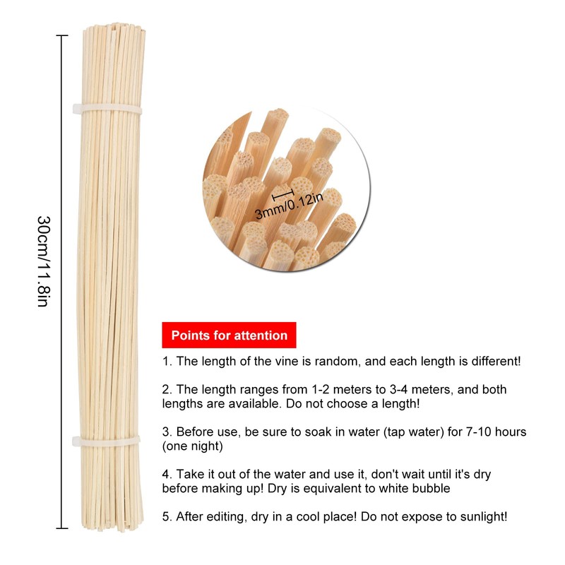 Use: weaving and wrapping, rattan house, crafts, decoration and decoration, aromatherapy sticks/volatile sticks. How to use: soak in water for 15 minutes before weaving, so that it stays moist and soft and not easy to break.