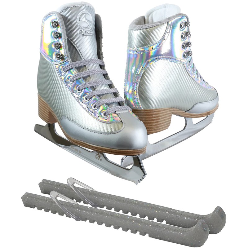 Jackson Ultima Ice Skates Softec Silver Nova ST7100 Womens 10 Bundle with Skate Guards