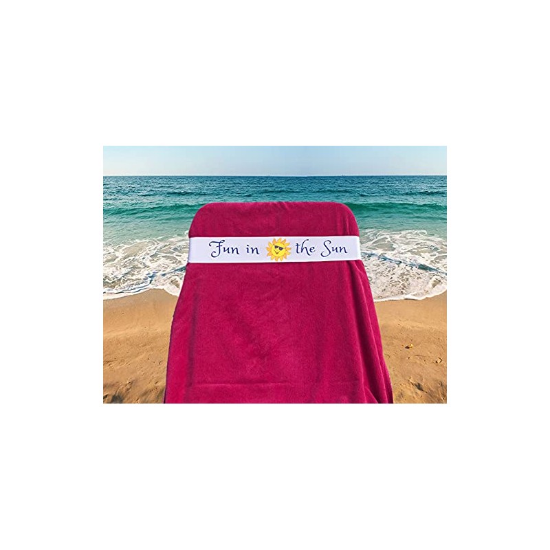 Jackster Beach Towel Band, Elastic Towel Strap for Pool, Beach, Lounge and Cruise Chairs (4 Pack, Fun in The Sun)