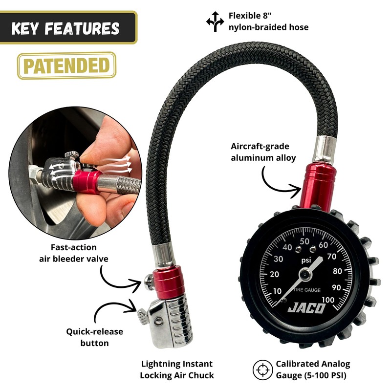 JACO ElitePro-X Tire Pressure Gauge with Lightning Chuck (100 PSI)