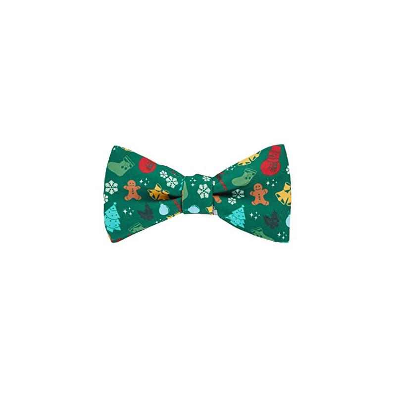 - Men's self-tie bow-tie in green colored Christmas tree decors snowman gingerbread gifts snowflakes