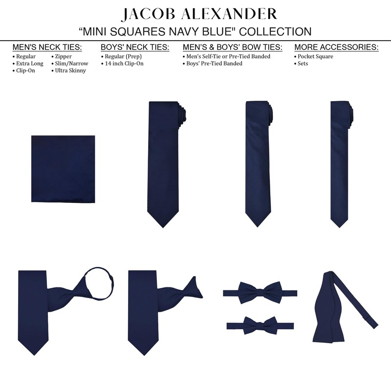 - Este artículo es parte de la colección de accesorios Jacob Alexander Mini Squares: corbatas para el cuello para hombres y niños, pajaritas y cuadrados de bolsillo, todo disponible en docenas de colores.