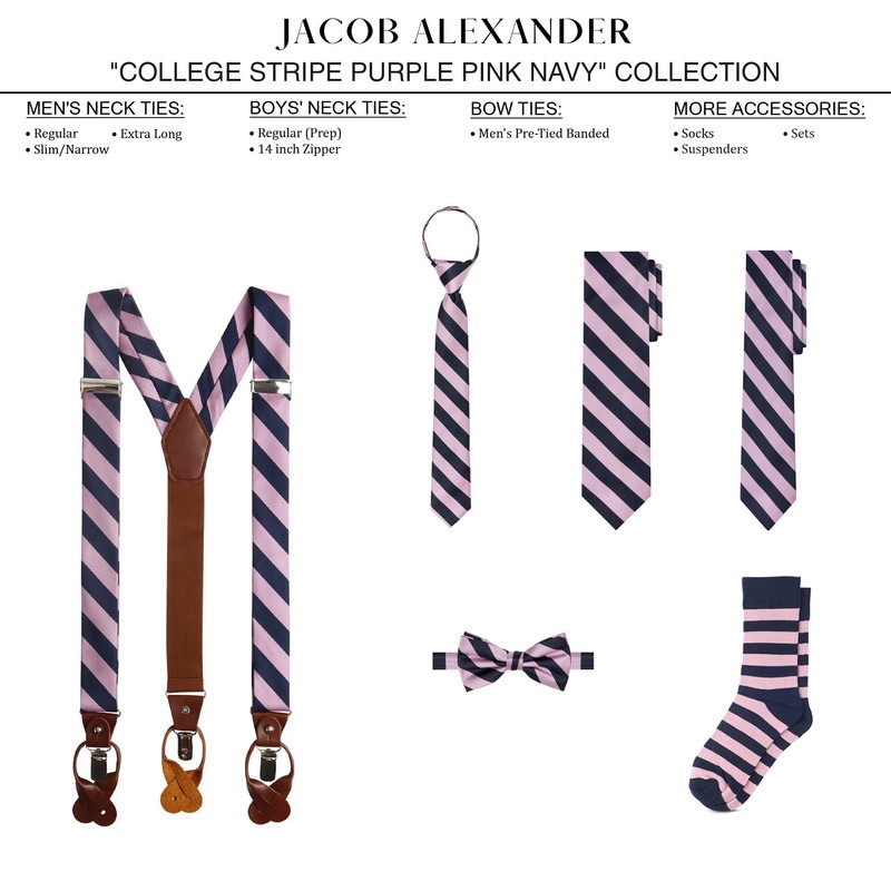 Jacob Alexander Stripe Woven Men's Reg College Bar Stripe Tie - Purple Pink Navy