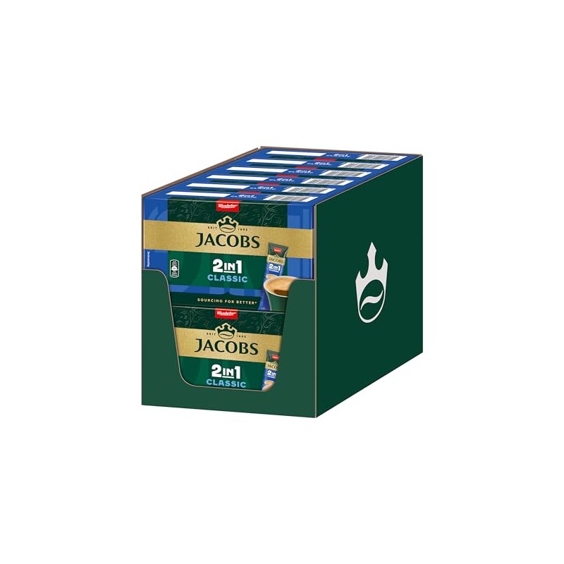Jacobs 2-in-1 Classic Drink Powder Sticks, 120 Sticks with Soluble Bean Coffee with Creamer, 12 x 10 Drinks