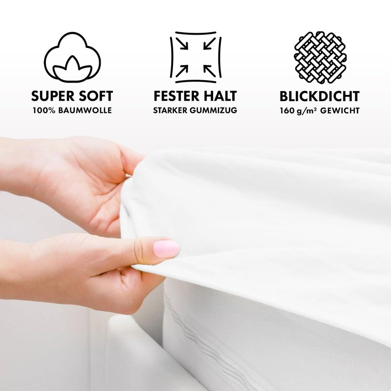 - Material: The jersey fitted sheet is made from 100% cotton and has a material weight of approx. 160 g/m².