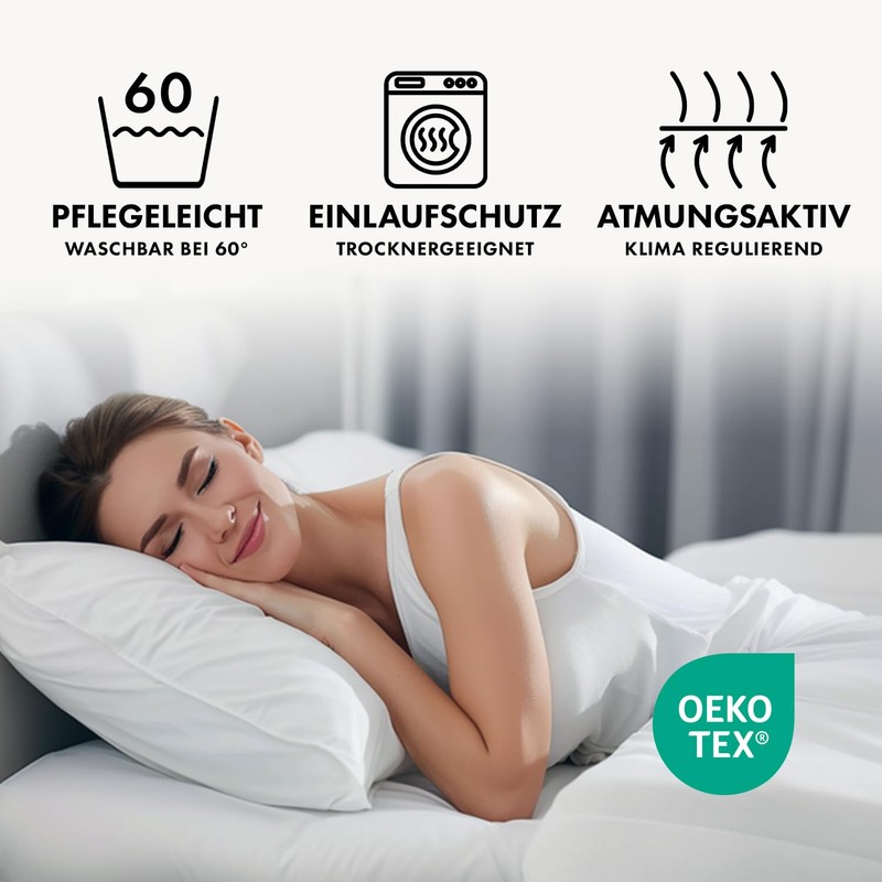 - Features: The fitted sheets have the following product and quality features: practical all-round elastic, breathable, dimensionally stable, elastic, skin-friendly, preshrunk, non-iron, easy-care, Oeko-Tex Standard 100 certified.
