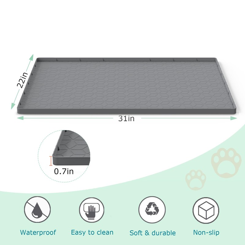 - Food-Grade Silicone: Cat mat for litter box is made from premium silicone material, safe for pets, durable & waterproof, soft on cat paws. Large cat litter mat 31''x 22'' to fit most cat litter boxes, available in 3 colors - gray, light gray, pink