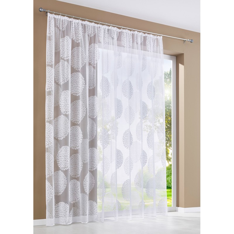 • With ruffle tape approx. 5 cm wide). Suitable for curtain rods (tunnel diameter for curtain rods up to max. 28 mm diameter) and curtain rails with universal gliders. The universal gliders are not included.