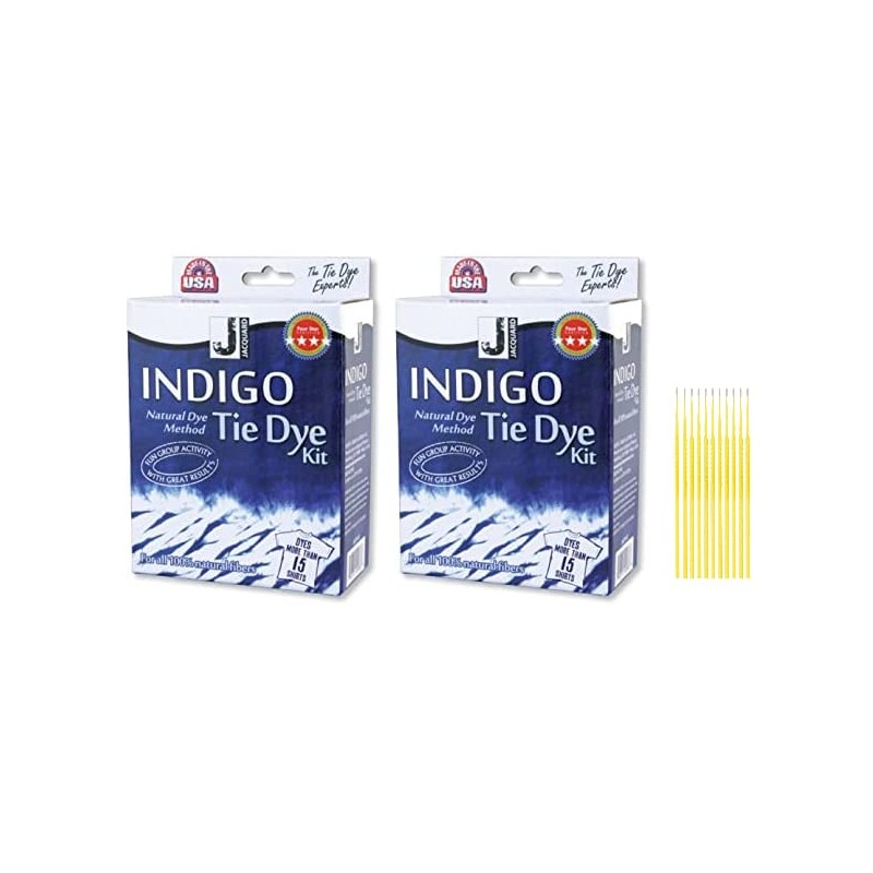 Jacquard Indigo Tie-Dye Kit Bundle - 2 Indigo Tie-Dye Kit Boxes, Natural Dye Method, Dyes More Than 15 Shirts Each - with Trebbies Detail Sticks