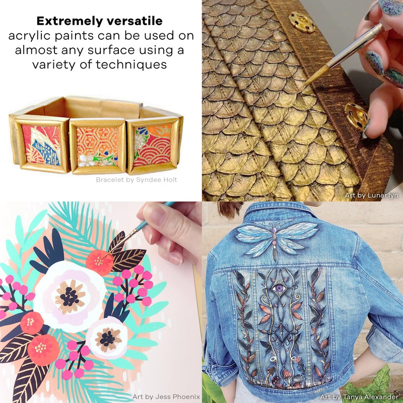 - Smooth Application - The light-bodied consistency of this metallic paint for metal and fabric is completely opaque. Create bold designs on both light or dark backgrounds or mix with other Jacquard products for different levels of transparency
