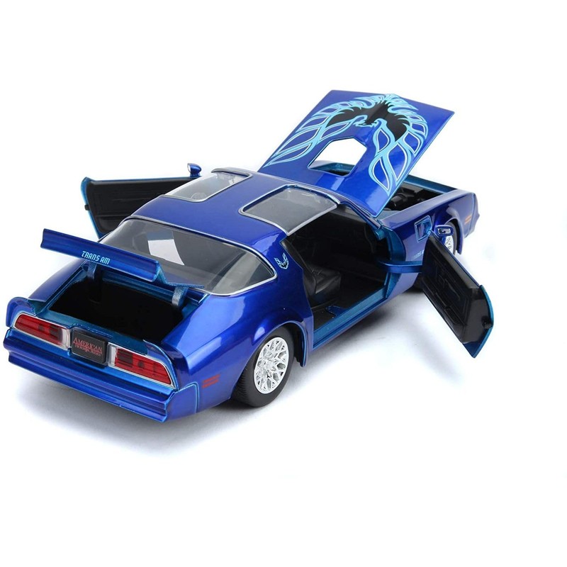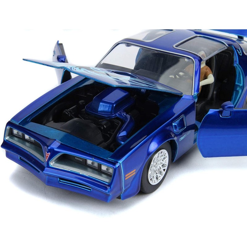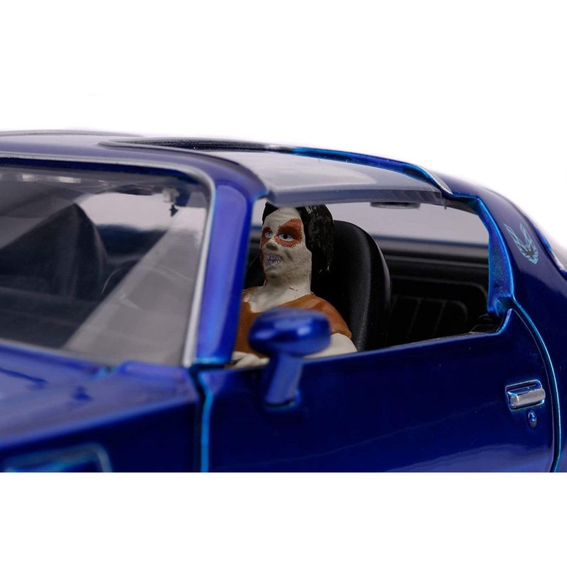 Jada Toys 253255022 Henry Bower's IT 1977 Pontiac Firebird Toy Die-Cast Includes Pennywise & IT Zombie Figure, Car, Doors, Boot + Opening Bonnet, 1:24, Blue