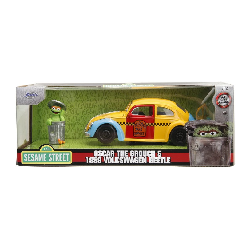 Jada Toys VW Beetle 1959 with Oscar from Sesame Street - Colourful Volkswagen Beetle (16.5 cm) Made of Metal, for Car Collectors and Fans of Sesame Street from 8 Years