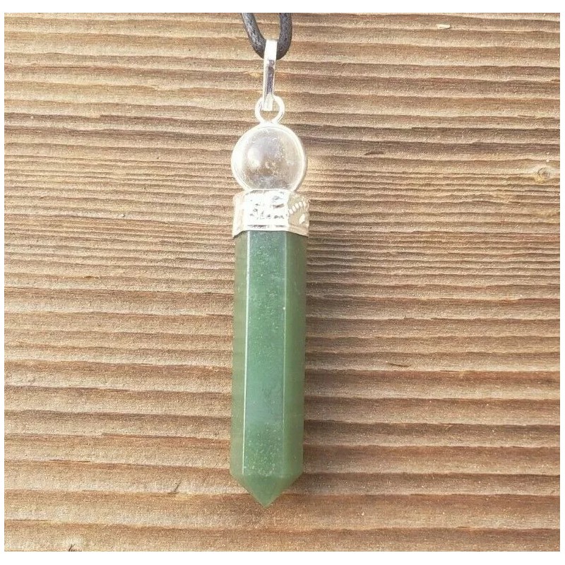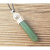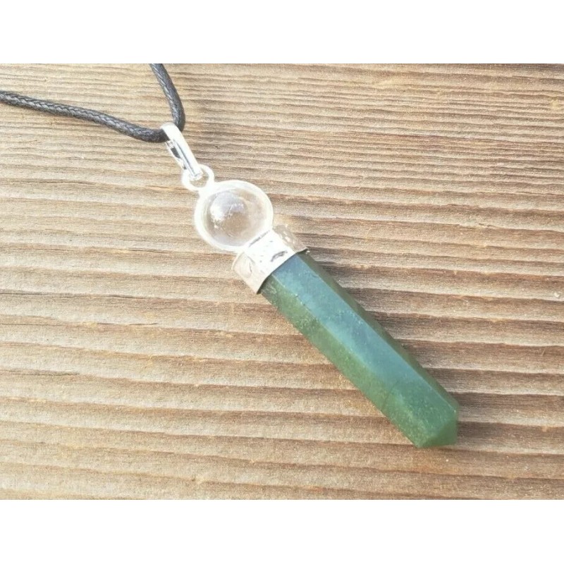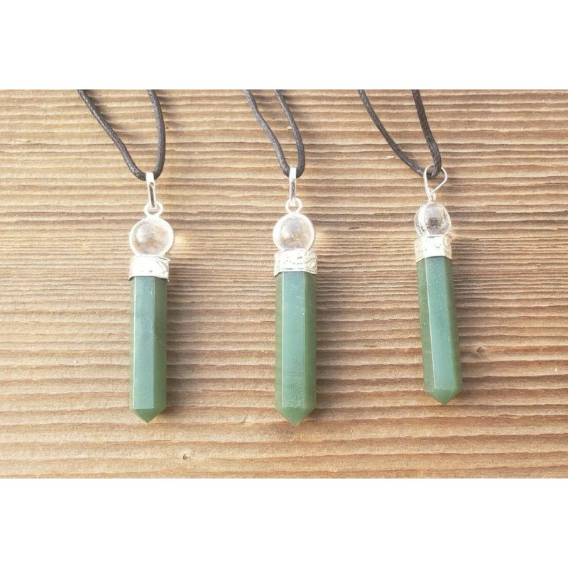 JADE 2 STONE CRYSTAL POINT PENDANT W/ QUARTZ SPHERE & CORD GEMSTONE