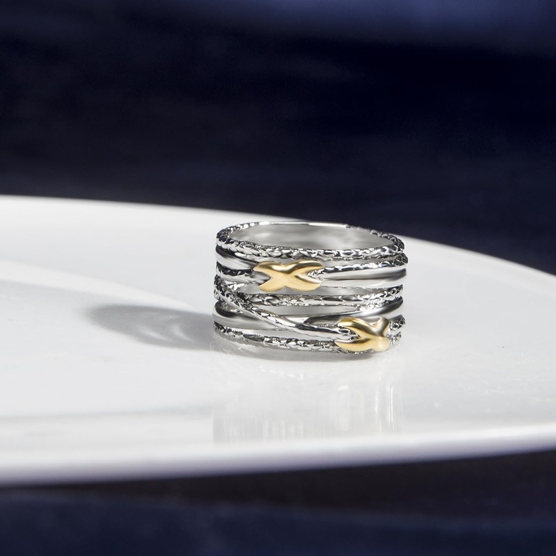 - ✔【Two-tone Crossover Ring】This designer jewelry for women is very featured with a unique a X-shape crossover and intertwined cable wire. Silver and gold of this two tone ring that is a stylish and eye-catching color scheme.