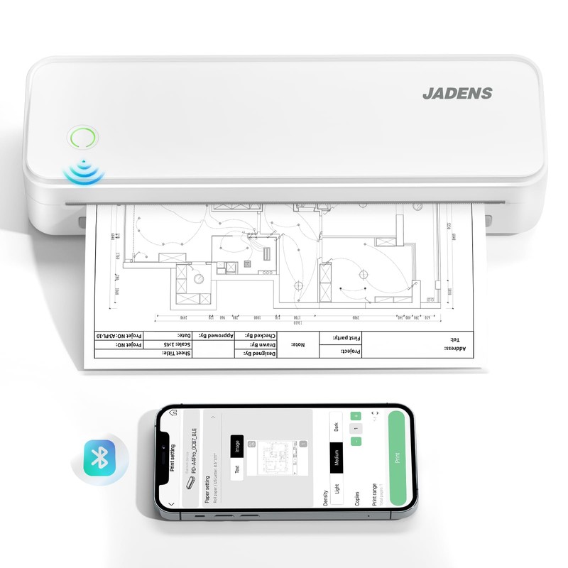 JADENS JADENS Portable Printers Wireless for Travel, Thermal Inkless Printer, Support 8.5" X 11" Thermal Paper, Compatible with iOS, Android & Laptop