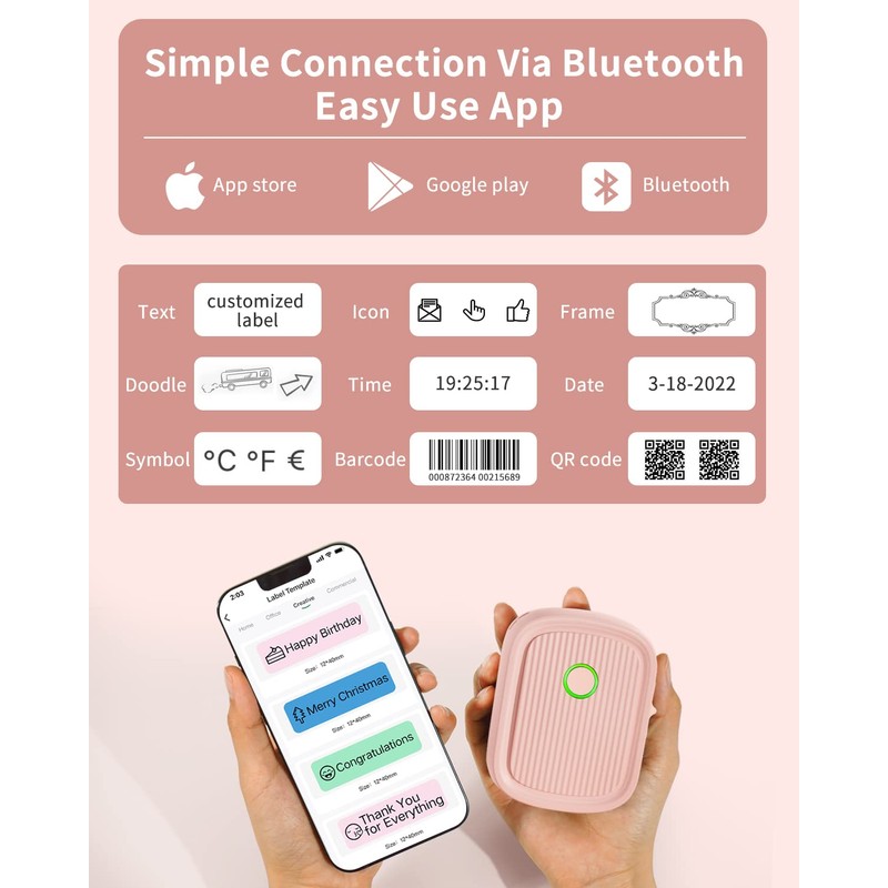 - Powerful & User Friendly App: We constantly provide FREE app for the bluetooth label maker, which contains different kinds of languages, fonts, icons, multiple templates without any personal information required.
