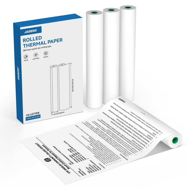 - JADENS Portable Printer with 6 Rolls of Thermal Paper, Inkless Printer Bluetooth Support for 8.5" x 11" Size, 4"X6",2",3",2" Round Label
