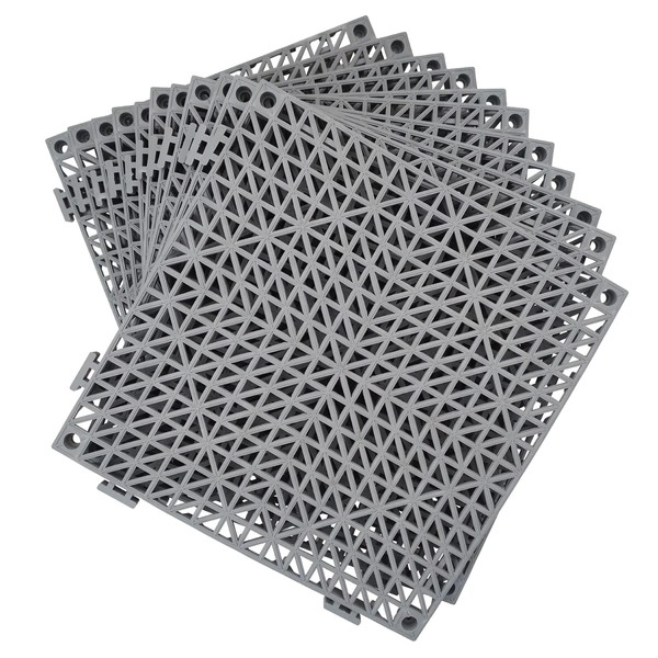 Jaderlu 12 Pack Modular Interlocking Cushion 11.6" x 11.6" Rubber Mat Floor Tile Mats Drain Pool Patio Balcony Yard Pet Area Washer Pad(Gray)