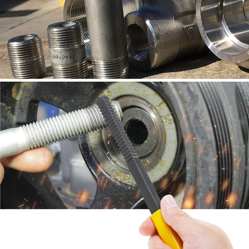 - 1. 【Purpose】:A professional thread file, powerful and practical, designed to repair damaged external threads on bolts, bolts, screws, pipes and fittings.