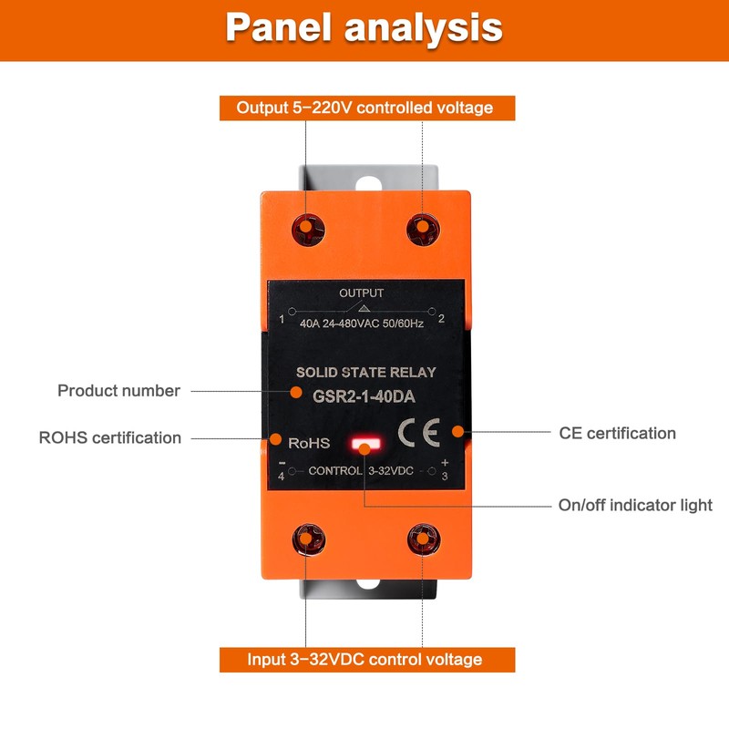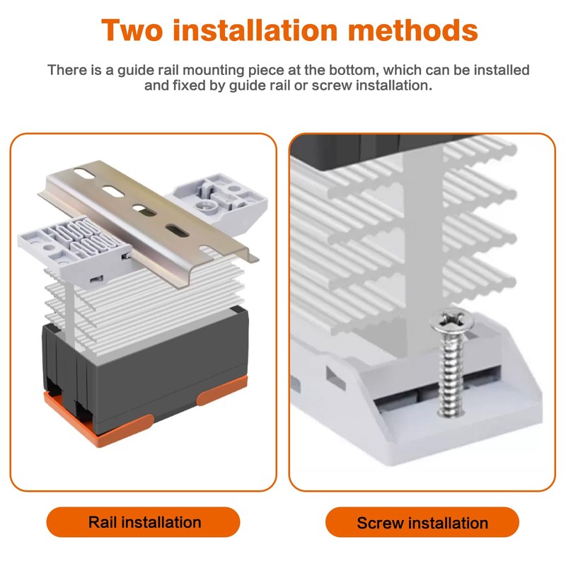- 3. Heat Dissipation The SSR solid state relay uses high-strength aluminum alloy heat dissipation, which greatly improves the heat dissipation effect and eliminates the tedious installation of the cooler itself.