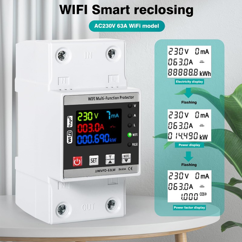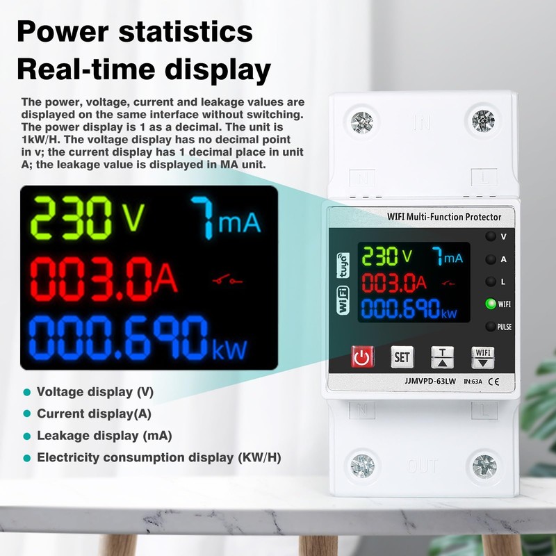 - Real-time data display: This multifunctional WiFi electricity meter has an LED screen with vibrant colours that provides clear and easy to read measurement results. The statistical data of the meter is displayed in real time: voltage, current, electricity, power and power factor.