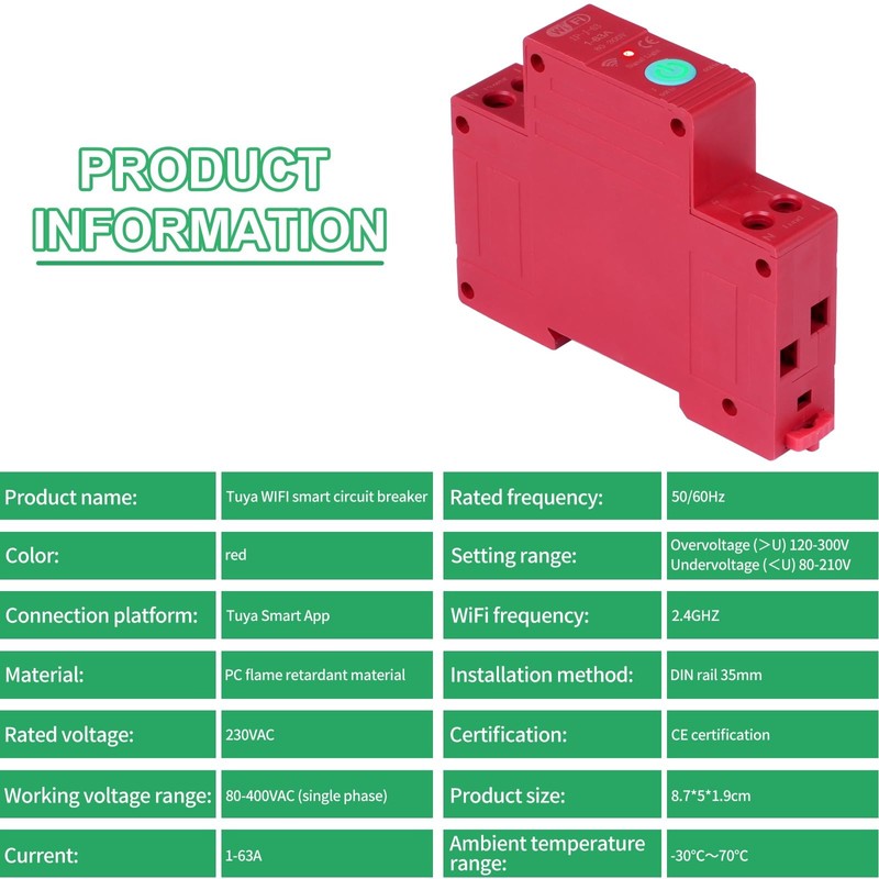 - Wide application: Tuya WiFi smart circuit breaker is a circuit breaker device that connects via WiFi and interacts with the smart system. It is widely used in current measurement systems, schools, markets, household appliances, industry, laboratories and other scenarios.