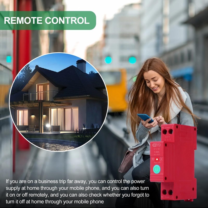 - Remote control and real-time monitoring: the WLAN circuit breaker is also a time switch. You can download the TUYA app to your mobile phone to set single timing, cycle timing, countdown timing, etc. to meet the switching requirements of devices in different scenarios. Display different data at the same time: total power consumption, current, voltage, power, etc., and monitor the real-time status of the load equipment remotely.