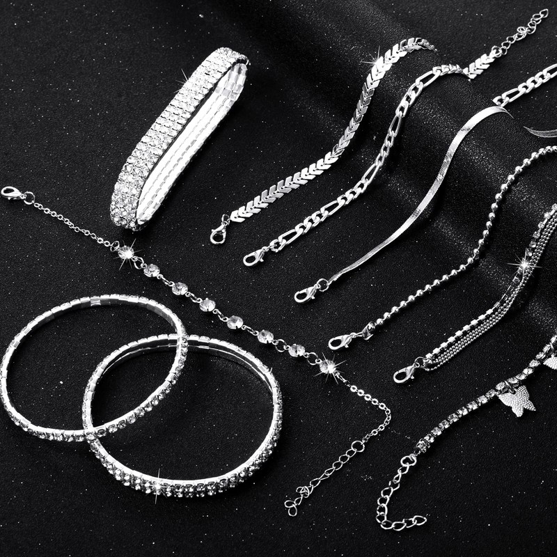 - 10 Styles for You to Choose: the package comes with 10 styles of ankle bracelets for women, including but not limited to beaded anklet, layered anklet, butterfly diamond anklet, flat snake chain anklet, etc., delicate and elegant, enough for you to choose according your own preference