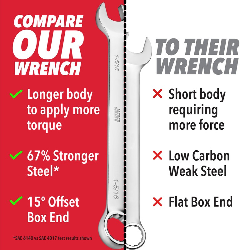 Jaeger 1-5/16 Inches Jumbo Combination Wrench with 15° Offset Box End – Heavy-Duty Metric Wrench with 12-Point Box End, High-Strength Steel, Automotive, Construction, and Mechanical Applications