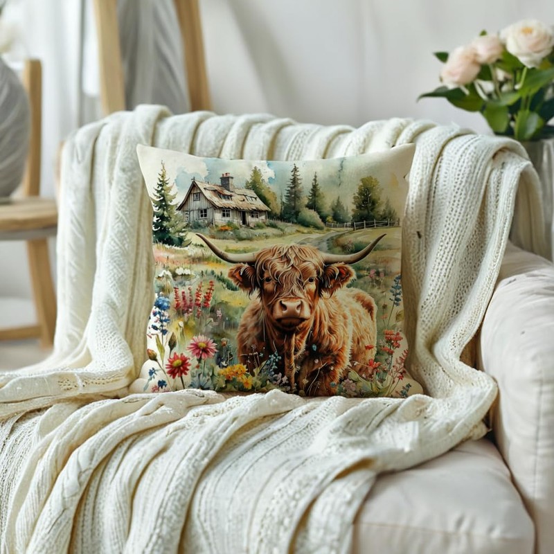 - ❤Vibrant Design:Playful yet rustic highland cow-themed throw pillow cover with a rustic cabin backdrop and wildflower meadow,the pattern on the cushion covers is carefully designed with bright and vibrant colors.