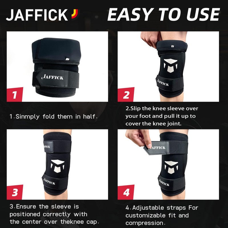 Jaffick 7mm Neoprene Knee Sleeves Support (1 Pair) & Compression Wraps - Lift...