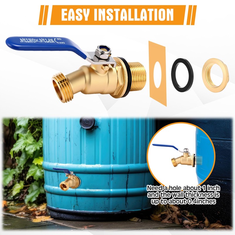 - Durable and Sturdy: crafted from quality brass, this spigot kit can withstand harsh outdoor conditions, ensuring it remains free from breaks, cracks, or leaks and making it a reliable choice for rain barrels, water tanks, and garden irrigation systems