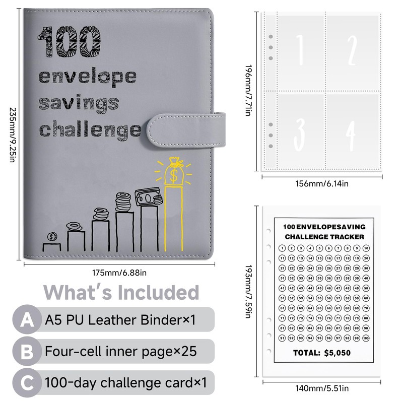 - Money Saving Challenge Book: Embark on an exciting money-saving adventure with the 100 Envelopes Money Saving Challenge Book. Starting with just $1 on day 1, you can double your savings every day until day 100, ultimately accumulating a remarkable total of $5,050. This 100 envelope challenge binder is not only a great way to engage the entire family but also instills healthy saving habits in children.