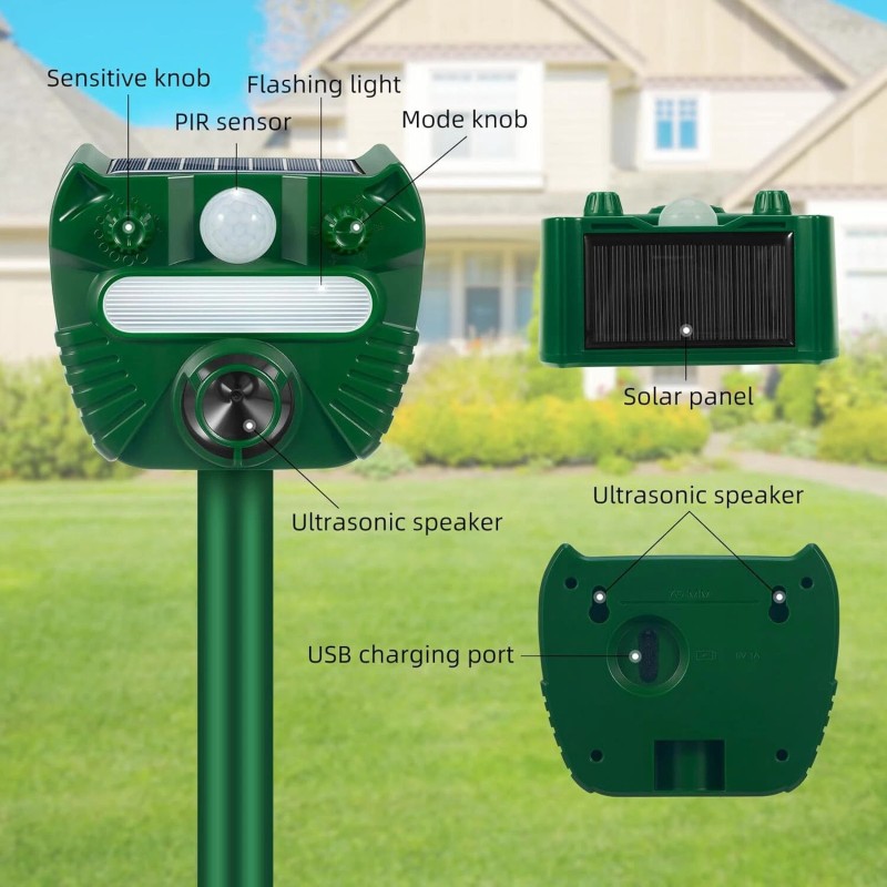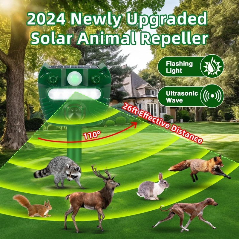 Jahy2Tech Motion Sensor Ultrasonic Solar Repeller for Outdoor Animals with Flashing Light