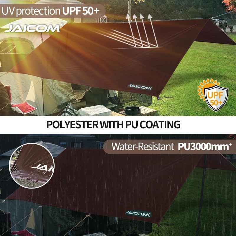 Best protection: The JAICOM Camping Tarp is made from 210T tear-resistant polyester fabric that is highly abrasion resistant. The seams are all press-glued and the fabric has a waterproof coating, making our tarp highly waterproof. It gives you strong protection no matter how extreme the weather is