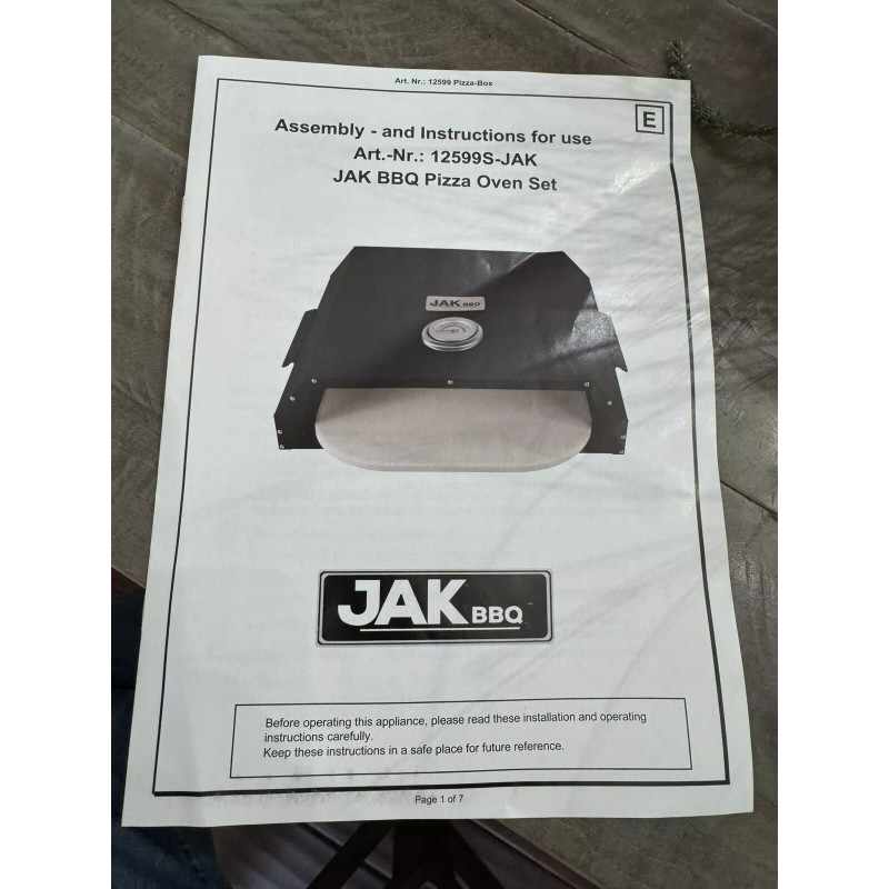 Introducing this JAK BBQ pizza oven, perfect for any outdoor setting! This oven is made of durable steel and comes in a sleek black color. It includes a pizza stone and has a built-in thermometer for easy use.