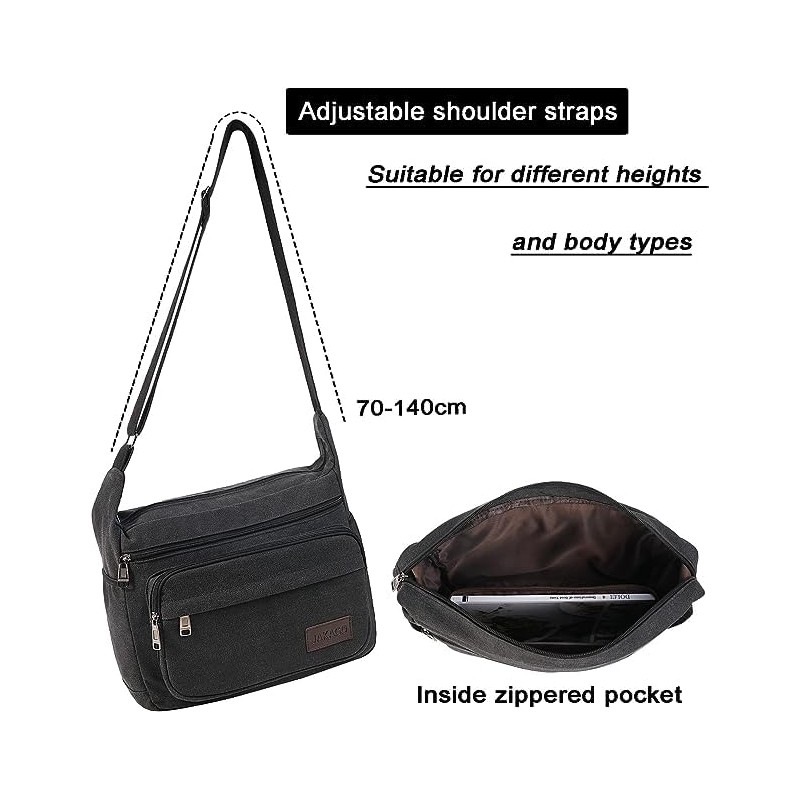 - 【Sturdy and Waterproof】: Our canvas shoulder bag made of high quality durable waterproof canvas.The inner pocket made with thicken shockproof pad gives a good protection to your laptop,Sturdy,lightweight and environmentally friendly.The outer material is waterproof.Even when it rains (little rains) ,you don't have to worry your wallet/cellphone/power bank/card/ipad getting wet.