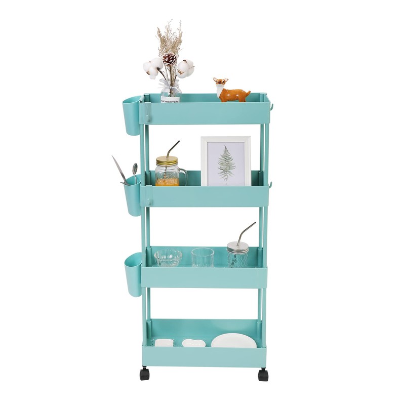 JAKAGO Hanging Cups for Storage Cart & Cutlery Stand, 6 Pack Storage Small Hanging Cup Holder, Multifunctional Removable Storage Cart Accessories (Teal)