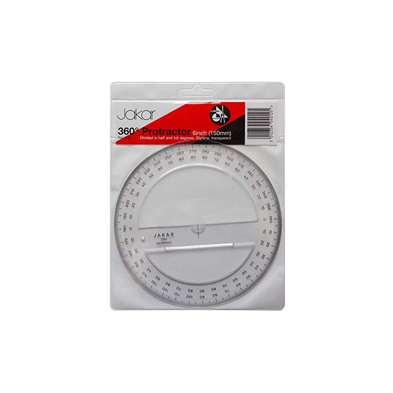 Jakar Quality Protractor 360- Degree 150mm Transparent Clear School Maths 2104