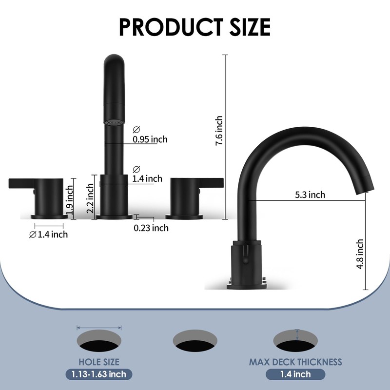 - Easy 3-Piece Installation: Complete set includes faucet, overflow pop-up drain, and dual supply lines. Fits standard 8-inch or 4-inch 3-hole sinks. Accommodates holes 1.13"-1.63" and deck thickness up to 1.4"