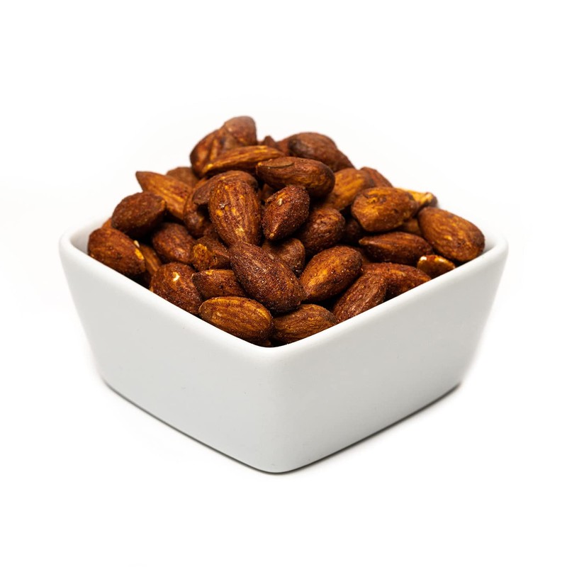 - SMOKY BARBECUE FLAVOR: These whole California-grown almonds, straight from Jake's Orchard, have been dry roasted and seasoned to perfection with a satisfying combination of sweet, sour, smoky and spicy barbecue flavors.