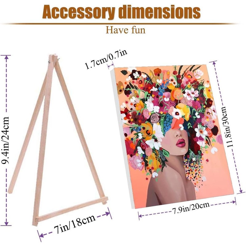 Jakener Paint by Numbers for Adults with Frame,Woman Flower Painting by Numbers for Adults with Wooden Easel,DIY Box Pack Paint by Numbers Kits for Home Wall Decor 7.8x11.8inch
