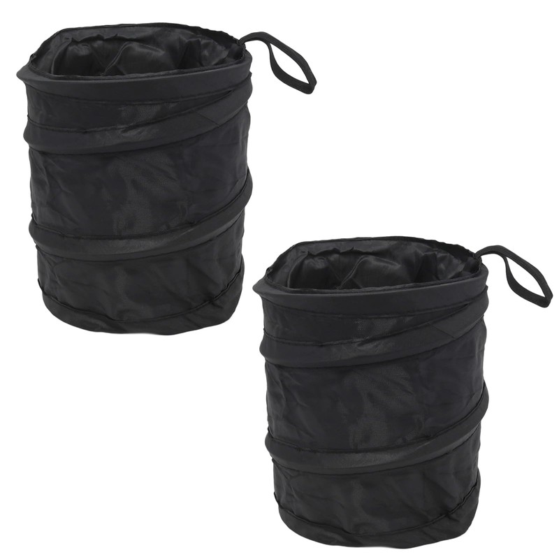 JAKOUE 2 Pack Collapsible Car Trash Can, Mini Pop-Up Waterproof Auto Garbage Bin with Velcro for Hanging, Vehicle Carrying Trash Bag for Car, Truck, SUV, Mini Van,Black
