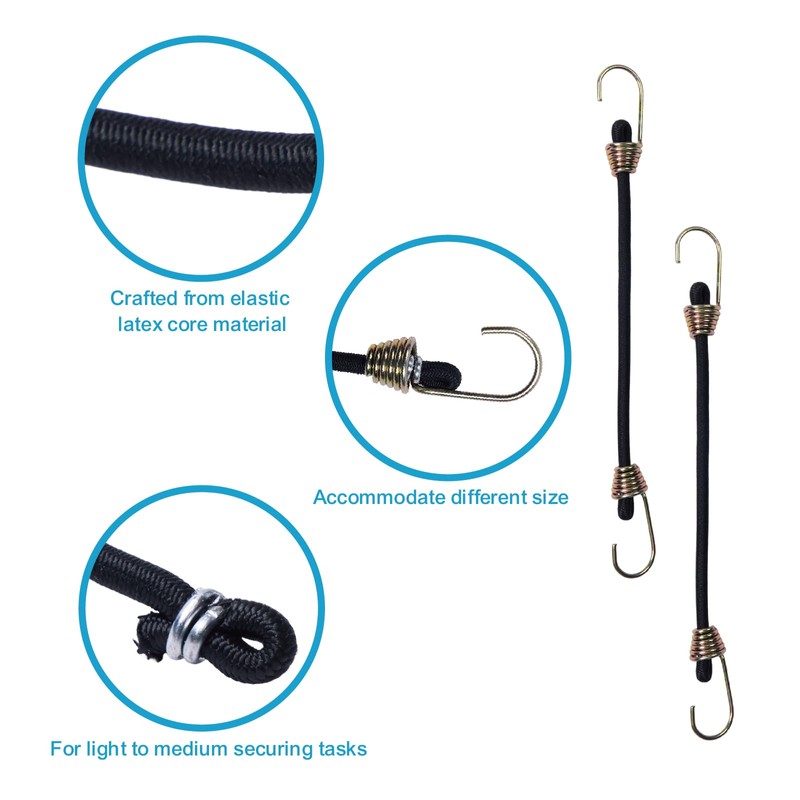• Flexible & Resilient Material: Crafted from elastic latex core material, these cords offer stretchability to accommodate different sizes while providing consistent tension for light to medium securing tasks.