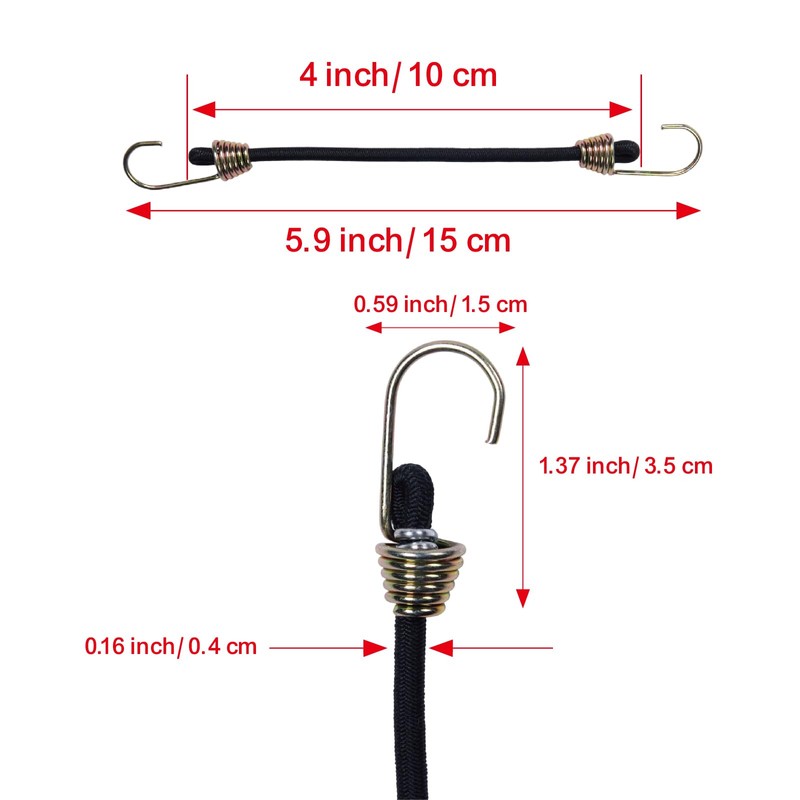 • Practical 10-Pack Quantity: Receive 10 pieces of 4-inch black bungee cords with hooks, providing multiple reusable straps for organizing and securing various items.