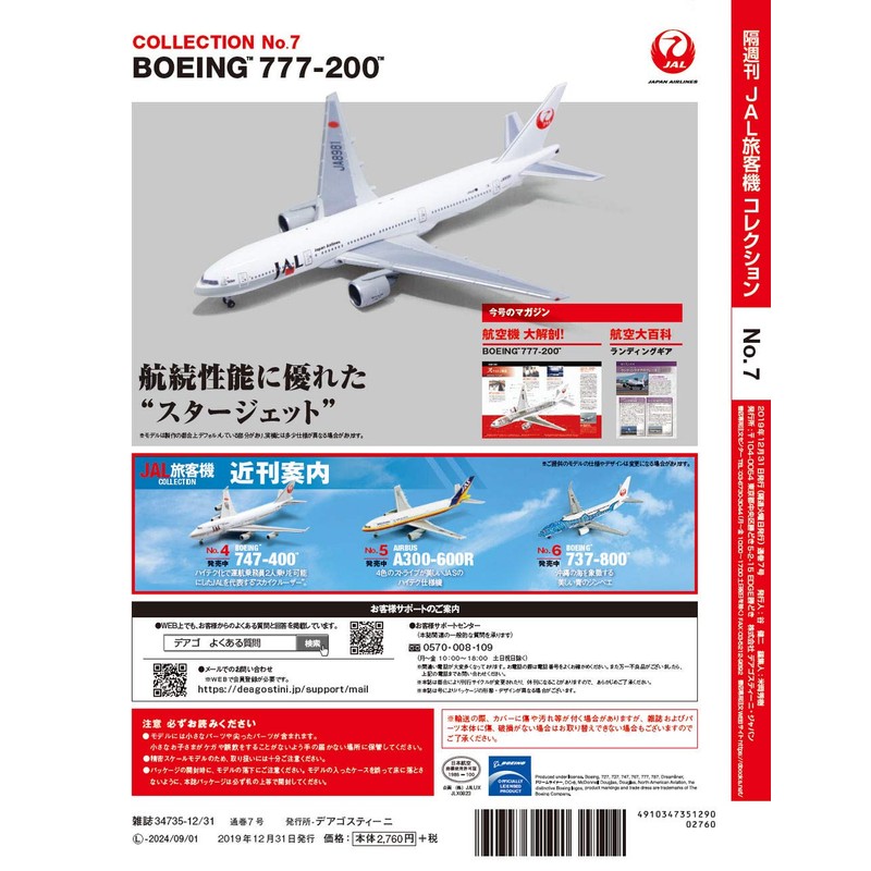 JAL Passenger Airplane Collection No.7 (BOEING 777-200 Starjet) [Separate Encyclopedia] (with model)